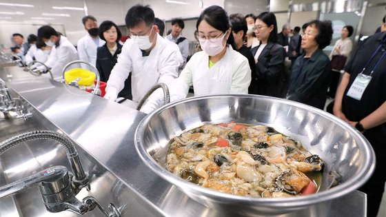 #【写真】食品医薬品安全処の職員が日本産活ホタテに対する放射能検査を準備している様子