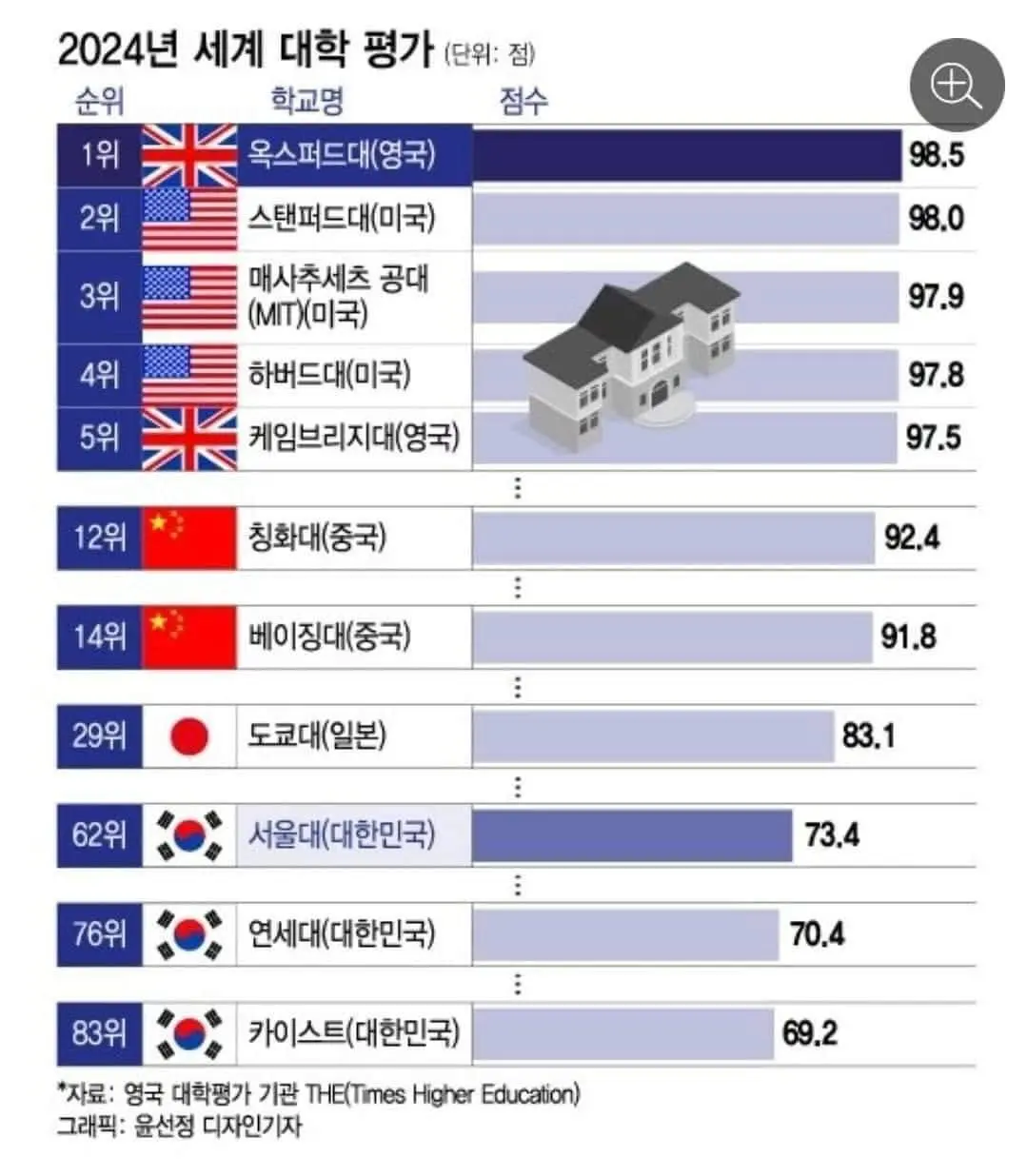 世界大学評価ランキング50位以内に韓国の大学は一つもない