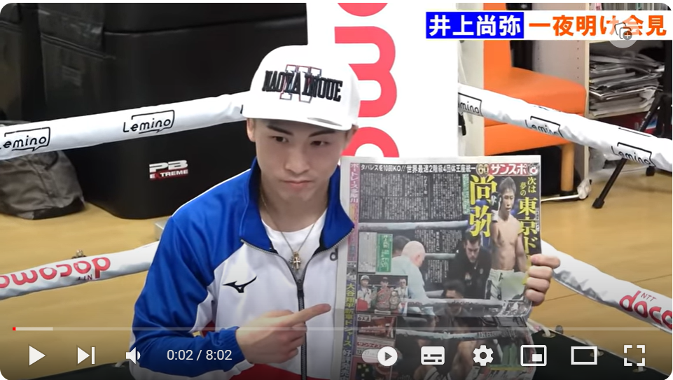同会社は井上の計401発のパンチを放ち、146発(そのうちボディーが39発)がヒット、タパレスは計310発のパンチを放ち、52発(そのうちボディーが17発)を記録したことを紹介し、「タパレスの3倍近い差をつけて上回った」とコメントした。