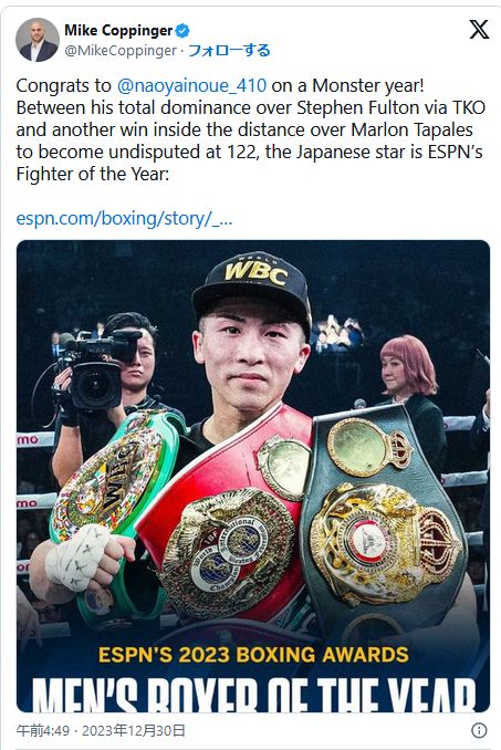 YouTubehttps://youtu.be/WbCCVbPBVyQ井上尚弥がESPNの年間MVPを受賞