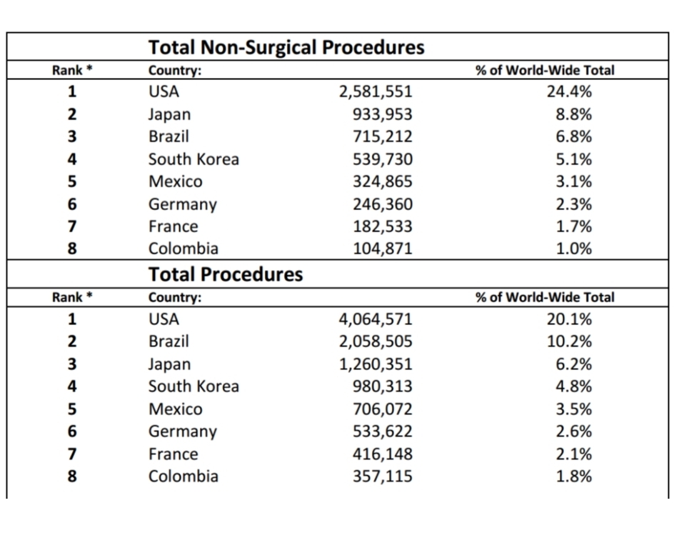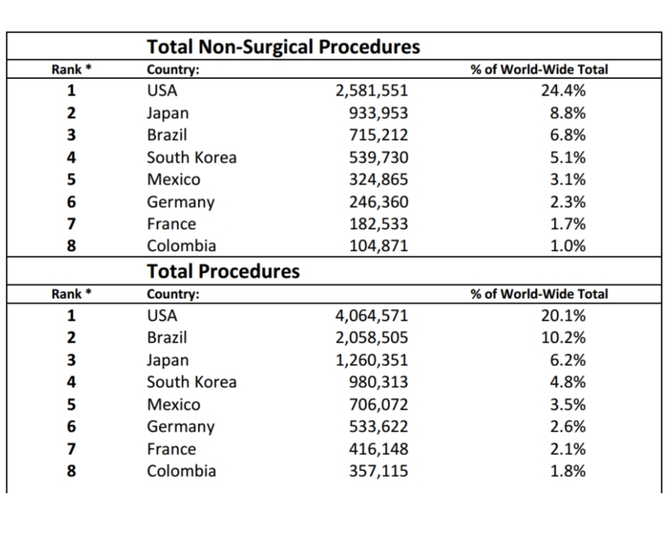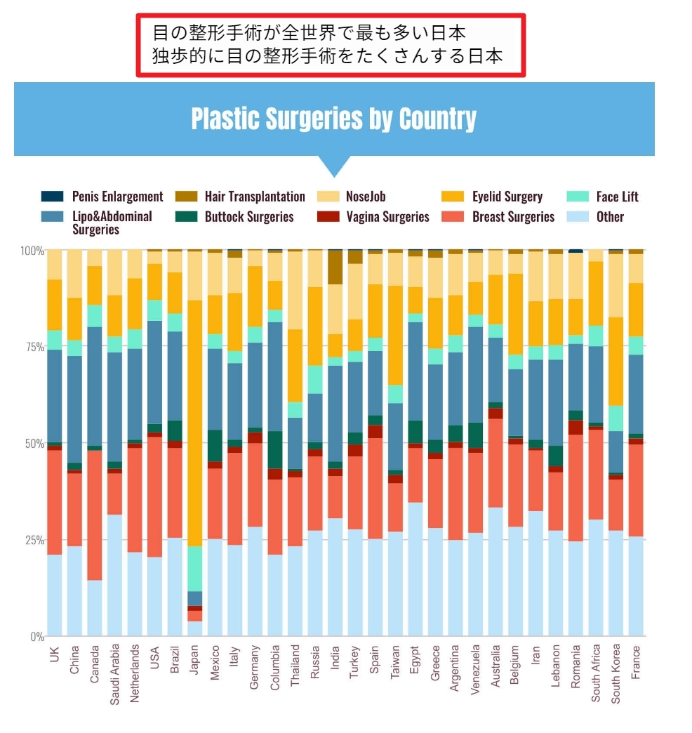 日本のデータが目に偏ってるのは、瞼を一重から二重にする「軽い」手術がほとんどだということだろう。