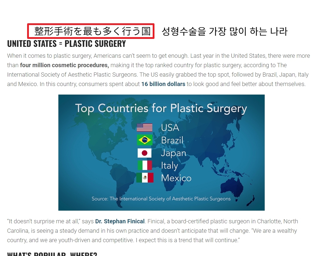'얼짱'(외모가 뛰어난 사람), '몸짱'(몸매가 뛰어난 사람) 담론이 수그러들지 않는 한국 사회에서 성형수술은 점차 통과의례처럼 자리하고 있다는 게 FT의 분석이다.
