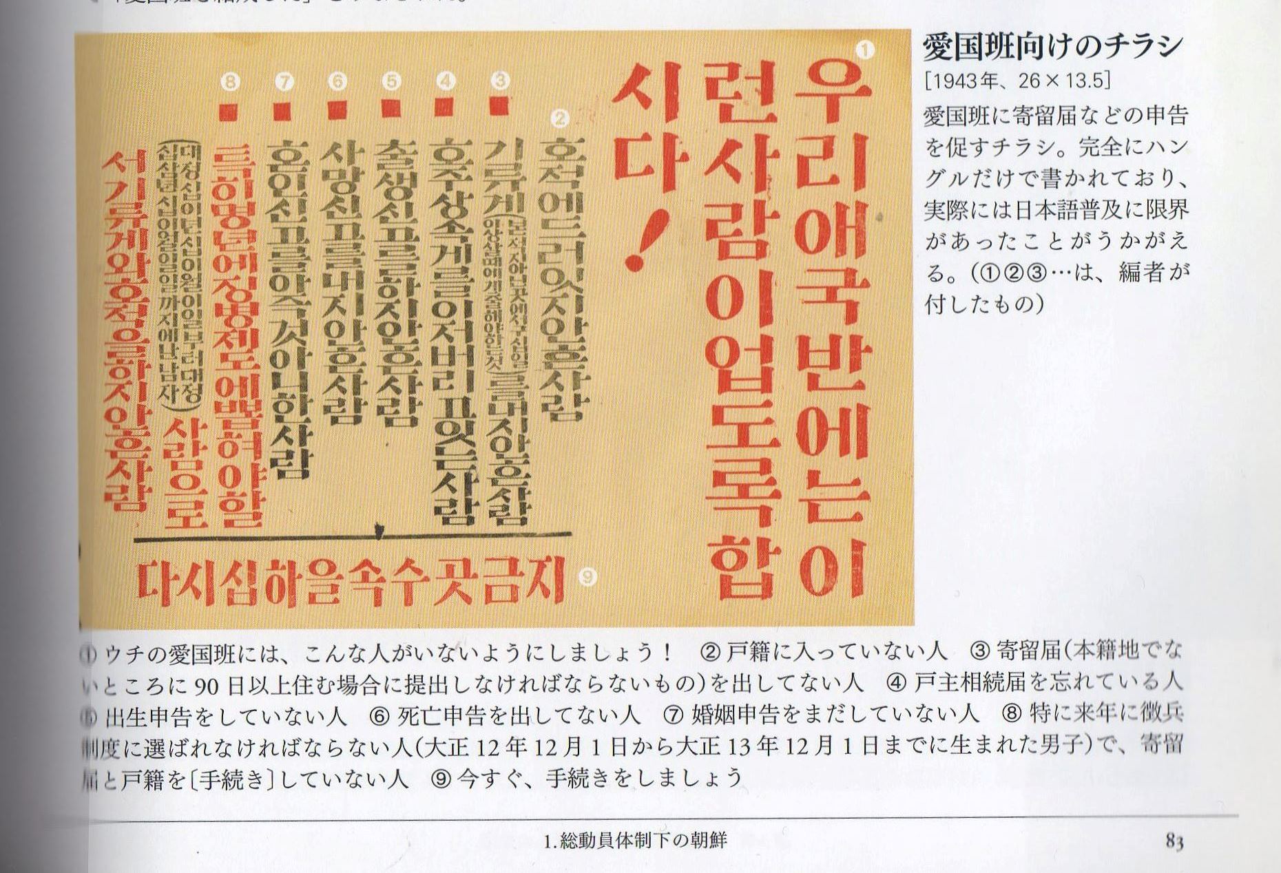 総督府の機関紙である京城日報1943年2月18日付に掲載されたポスターでは、青年団服を着た青年があたかも徴兵を切実に望むかのような姿だ。親日画家の金仁承(キム・インスン)が描いた大型の陸軍志願兵のポスターをはじめ、海軍志願兵の募集ポスター、朝鮮人学徒志願兵、陸軍少年飛行兵のポスターが乱発されるなか、志願兵になって最初に戦死した李仁錫(イ・インソク)や李亨洙(イ・ヒョンス)らの名前を連ね、「聖戦殉国の模範を示した人」と書かれたポスター、「私たちが待っていた道、光明と共に開こう」という文とともに銃剣を構えて殺気を放ってにらむ兵士の姿が描かれたポスターが、特に見る人に苦痛を与える。映画のポスターのようにみえる「こうした種類のポスターは、戦争をより身近に感じさせ、幻想と欲望の習性を悪用して戦争を美化する」。働く女性の周りを「あなたの後は私が一手に引き受けます」という言葉で囲み、女性の労働力の動員の下心をあらわにしたポスターが京城日報に掲載された日は、1945年6月15日だった。