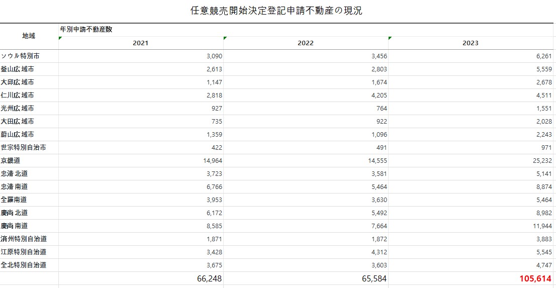 2023年には競売申請が「10万5,614件」に達しています。