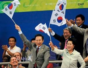 李明博(イ・ミョンバク)大統領が北京オリンピック(五輪)代表チームを応援する際、上下が逆になった太極旗(テグッキ、韓国の国旗)を持っていたことが明らかになり、論議を呼んでいる。