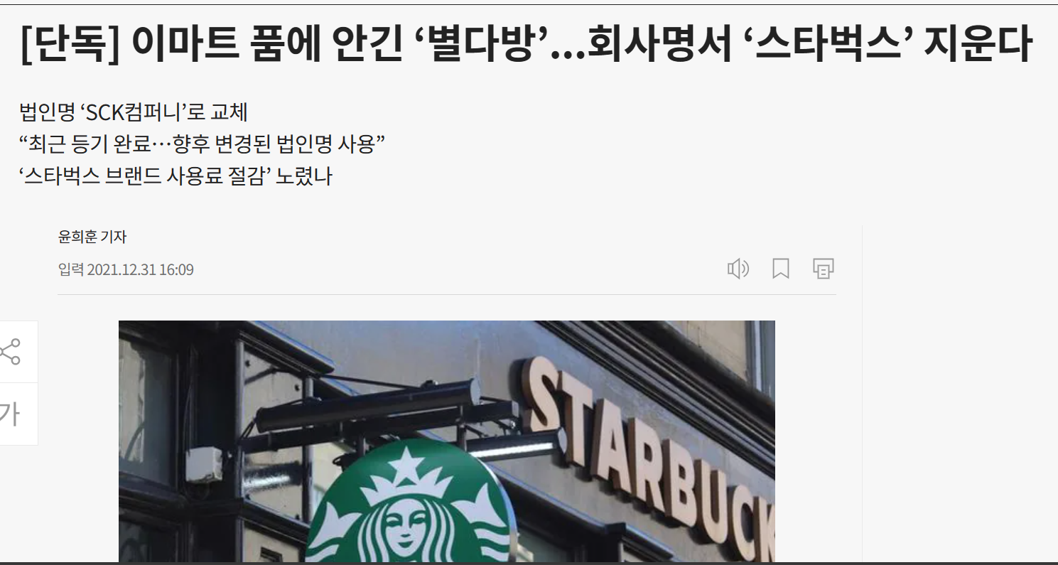 https://biz.chosun.com/distribution/food/2021/12/31/P5HP4MSGBBCHFFCYUGXKCKGHRM/国際掲示板でも韓国スターバックスは本家スターバックスと関係ないのにって書かれてた。