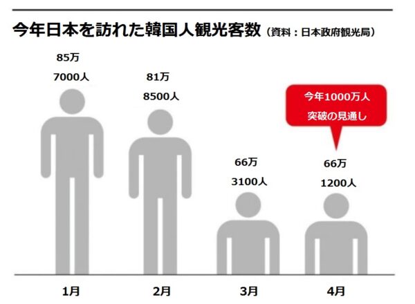 韓国人700万人が日本へ…昨年の訪日外国人の消費額5兆円