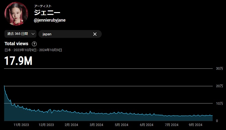 特に、Jimin の場合は、日本で再生活動をするファンダムが殆ど居ないので、ベースラインが極めて低い。