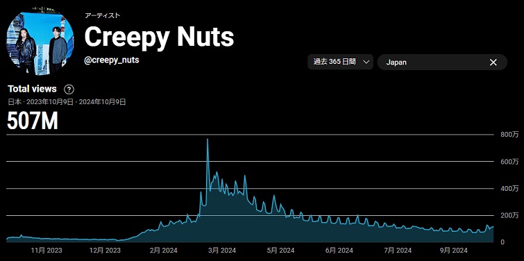 Creepy Nuts や こっちのけんとさんが The First Take に登場した時がこれに当て嵌まります。