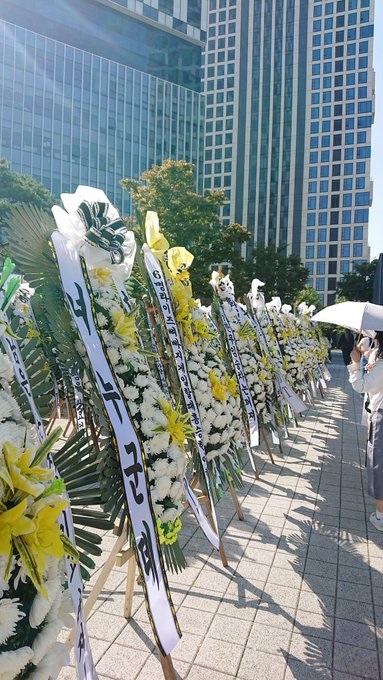 っー不思議な世界。それが東アジア。ここ何日かK-POPアイドルの事務所に韓国人のアンチ達がお葬式用の花輪を大量に送りつけて、世界中がドン引きしてるんだけど。