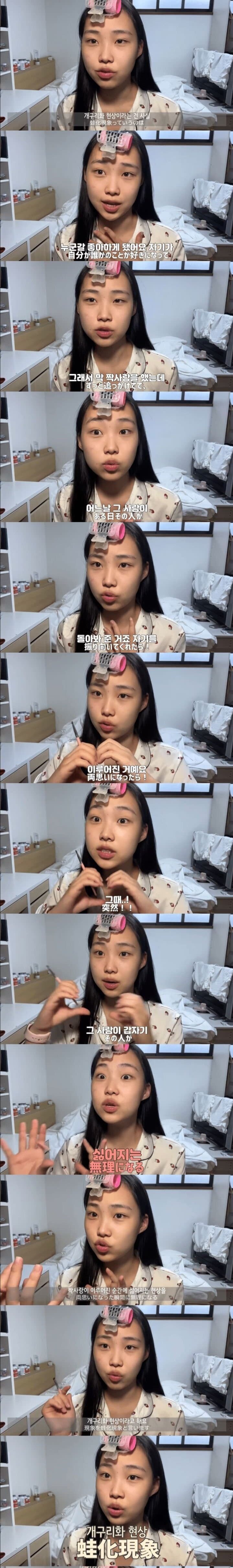 これが韓国人流よ。心理学者の藤沢伸介が2004年に発表した論文で使われた言葉(藤沢伸介「女子が恋愛過程で遭遇する蛙化現象」『日本心理学会大会発表論文集』p. 1095。) 好きだった相手が生理的に無理というくらいまで逆に振り切れることから、グリム童話の「かえるの王さま」になぞらえ、蛙化と名付けられました。