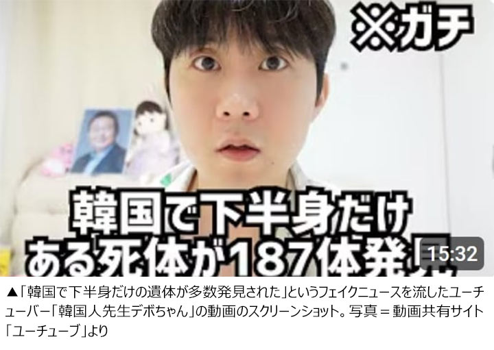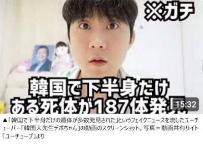 デボちゃんは先月22日、「最近、ノービザ(査証免除)で韓国に入国した中国人犯罪者たちの殺人や臓器売買問題が深刻だ」という動画を掲載し「韓国で下半身だけの遺体が37体発見された。非公開捜査分でも150体ある」と主張した。根拠として挙げたのは、身元が分からないネットユーザーがハングルで投稿した同様の内容のコメントだけだった。