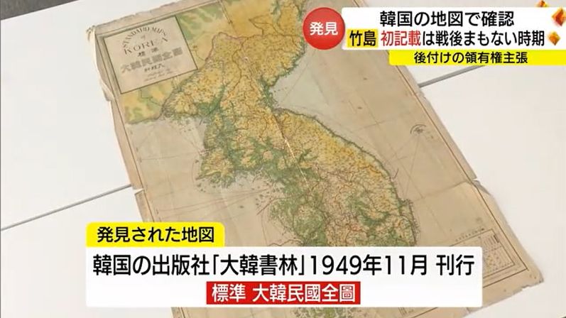 韓国で製作された地図に初めて「竹島」が記載されたのが、戦後まもない時期だったことを確認できる新たな地図が発見され、15日、報道関係者に公開されました。
