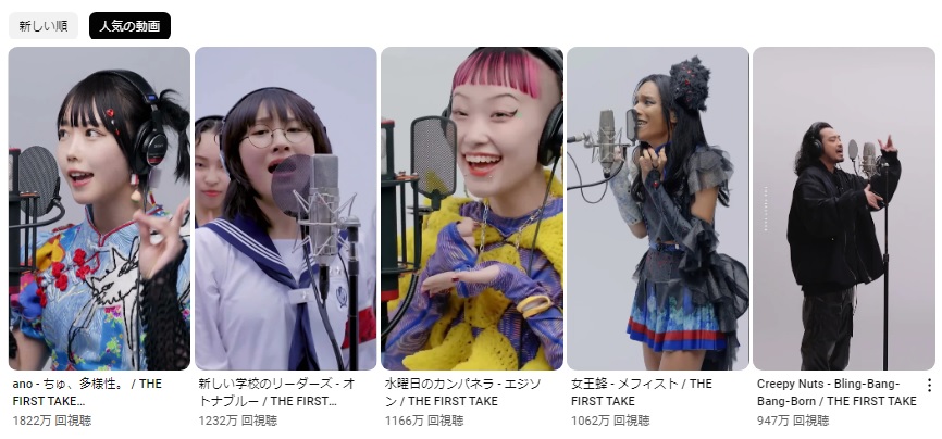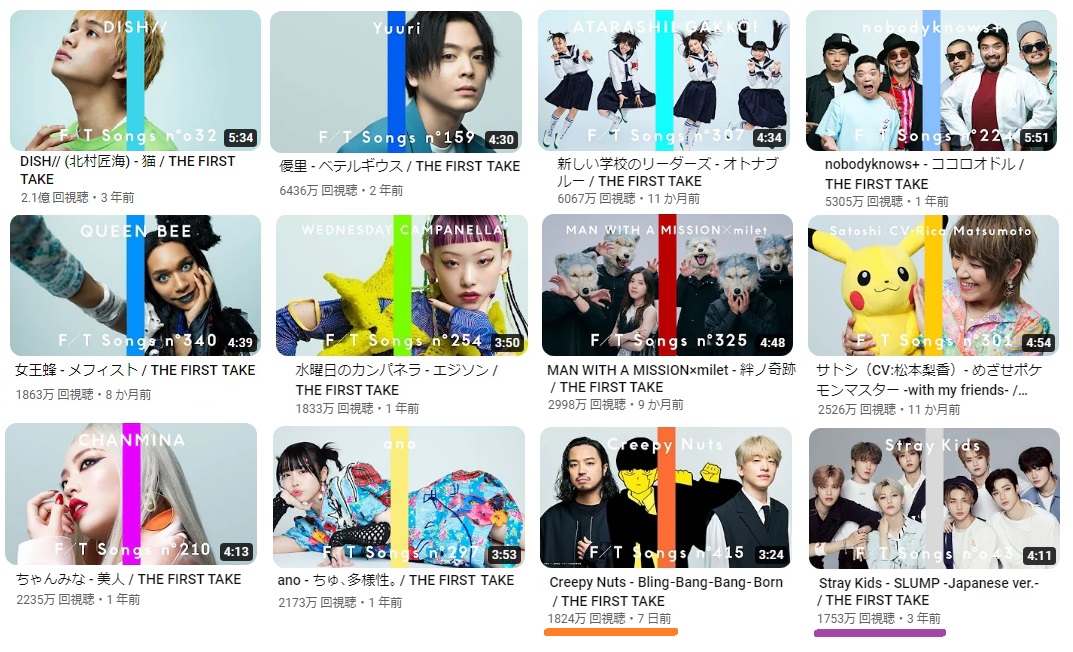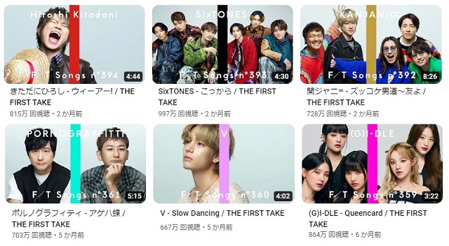 以下は全て The First Take にあがっている動画、現在の再生数。