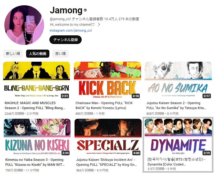 こちらは音源をそのまま使った公認オリジナル動画で、再生はもうすぐ1000万に到達する勢い。