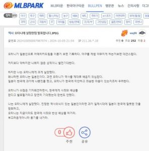 오타니가 기자회견에서 한국에 사과와 배상을 하지 않는 것이 유감입니다