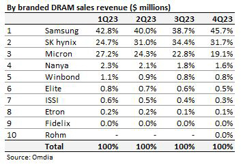 삼성전자, 작년 4분기 D램 점유율 45.7% 7년만에 최고치