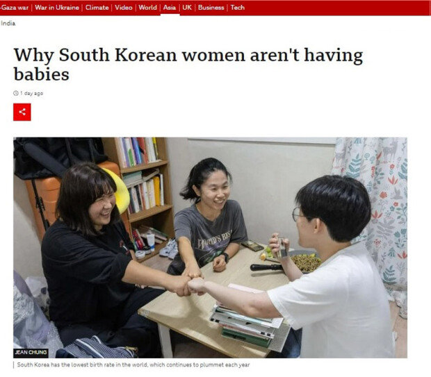 英BBCは先月28日(現地時間)、「世界的に出生率が減少しているが、韓国ほど極端ではない」とし、その背景を分析する記事を掲載した。韓国の政策立案者が少子化に対する青年と女性の声を聞かないという批判があり、独自に複数の韓国女性にインタビューした。