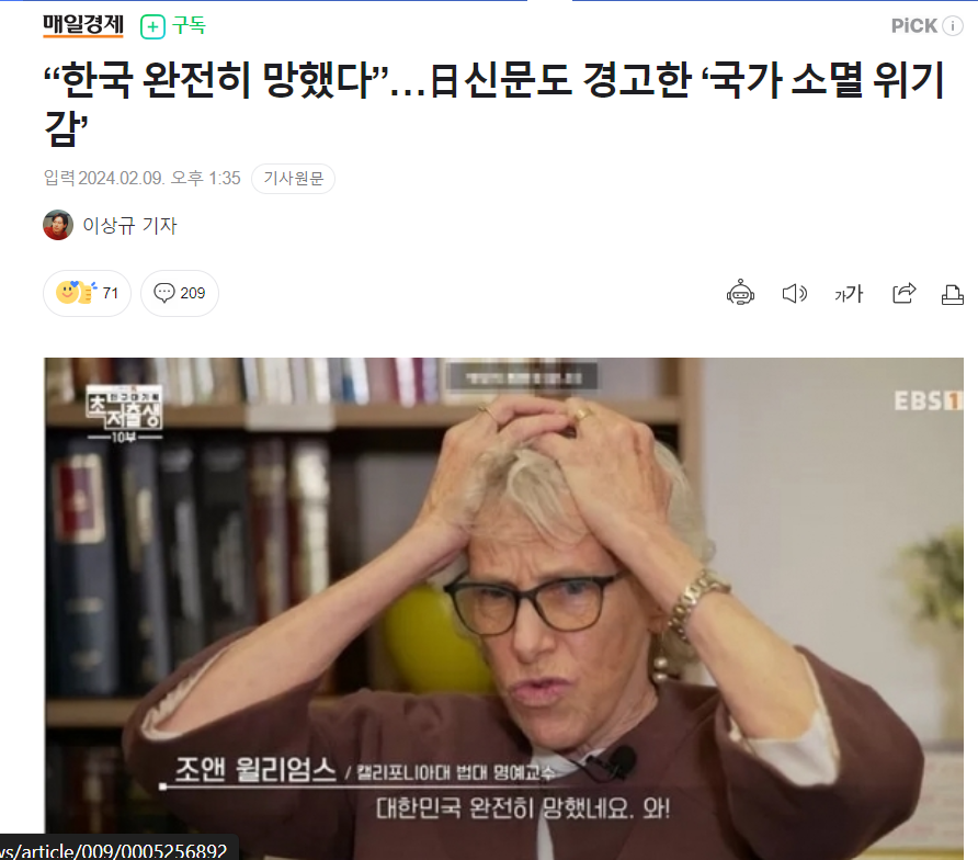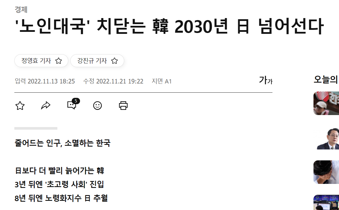 그러나 한국의 최저치는 매우 낮을 것이며 이로 인한 급속한 인구 저하로 인해 국가의 전체적인 규모가 매우 축소되어 1960년도 한국처럼 북한의 재침공 문제가 현실화될 것이라는 우려가 나오고 있다.>>35