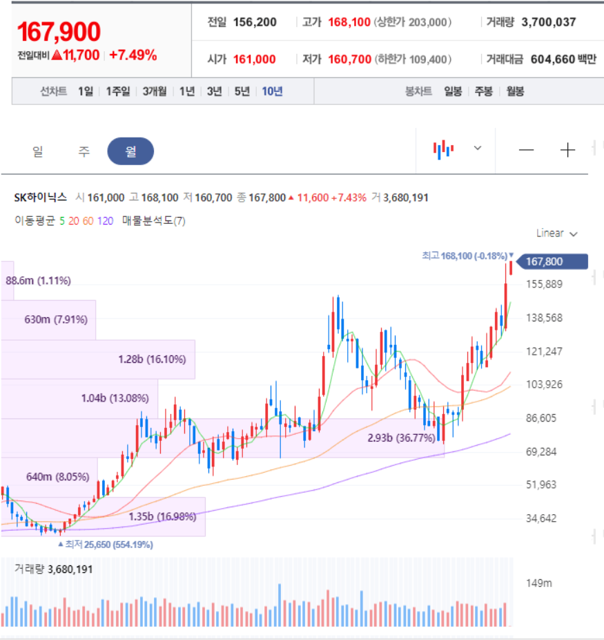 ハイニックス、52週間の新高値更新中