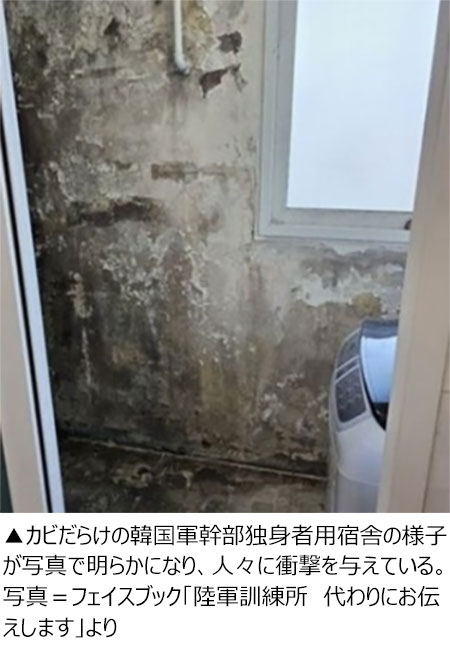 カビで覆われた韓国軍幹部の宿舎…「誰が幹部をしようと思うだろうか」