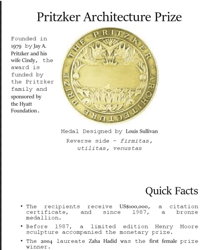 “The Pritzker Architecture Prize”