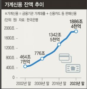 2023年に経済協力開発機構加盟国のうち、経済規模比総負債比率が上昇した国は韓国だけだった。 韓国の家計と企業、政府の負債を全て合わせた韓国の総負債が2023年、史上初めて6000兆ウォンを突破したという。