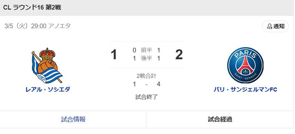 これって、ソシエダ対PSGなのか、それとも久保選手対・・・・・名前なんて言うんだっけ?(笑)選手の対決。どっちを対象にしたモノなのだろうか?