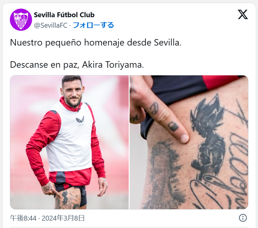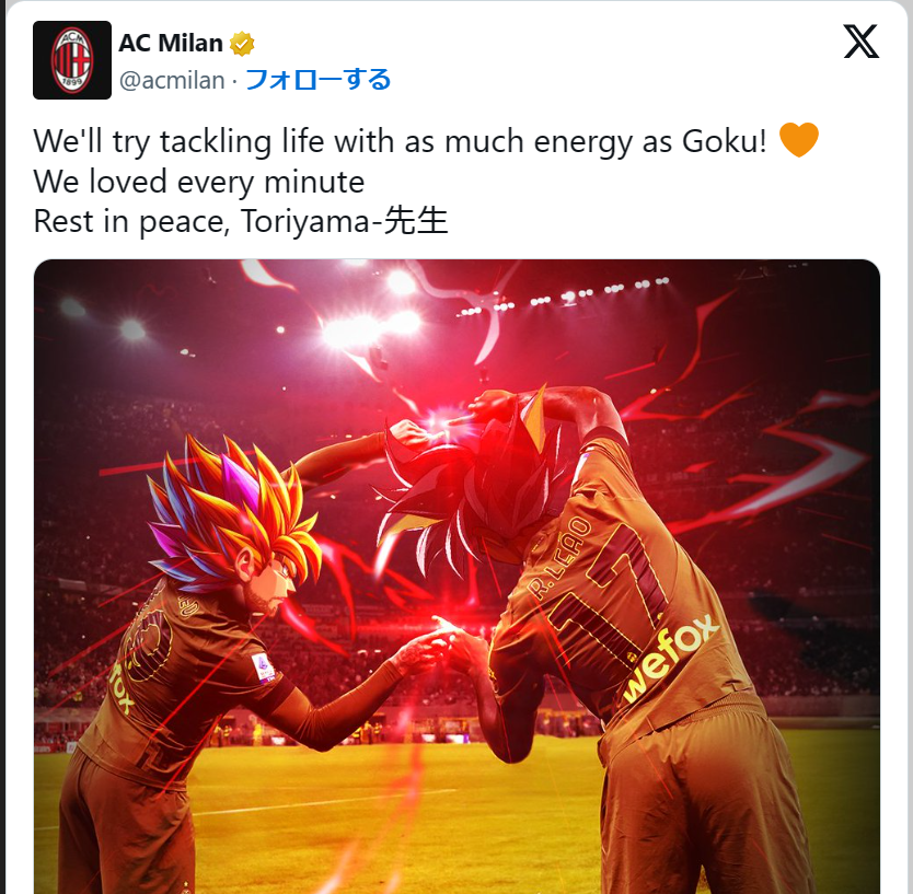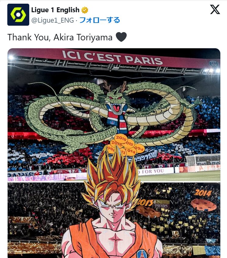 DBの実写版映画をやった俳優が、失敗作を作ったことを謝罪してるニュースなどもありましたレアルソシエダ対グラナダの試合前にも鳥山明への追悼でDBの曲が流れたようです