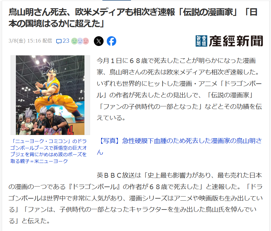 https://twitter.com/espinof_com/status/1767175299693691352韓国で「ドラゴンボール」販売が14倍に 作者鳥山明さん訃報受け