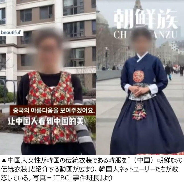 >中国人女性が韓国の伝統衣装である韓服を「(中国)朝鮮族の伝統衣装」と紹介する動画が広まり、韓国人ネットユーザーたちが激怒している。