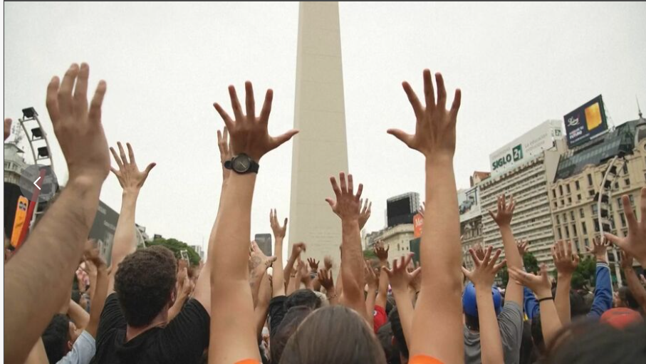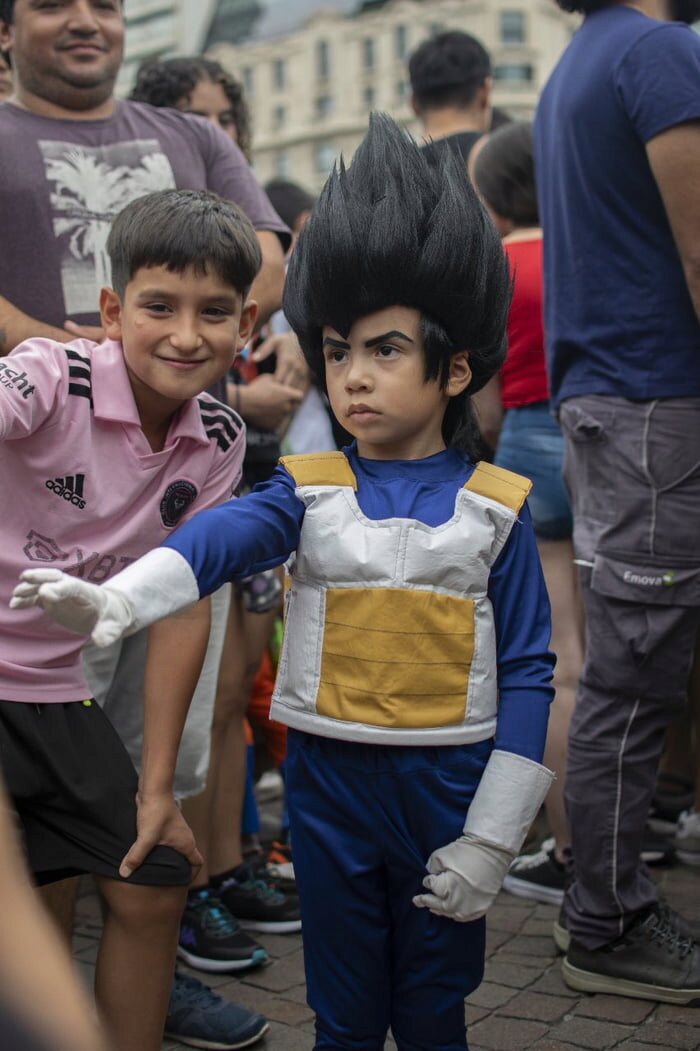集会はブエノスアイレスを象徴する塔のふもとで開かれ、コスプレ姿のファンが集まりました。「ドラゴンボール」のアニメはアルゼンチンで1990年代中ごろに初めて放送され以降、世代を超える人気作品となっています。