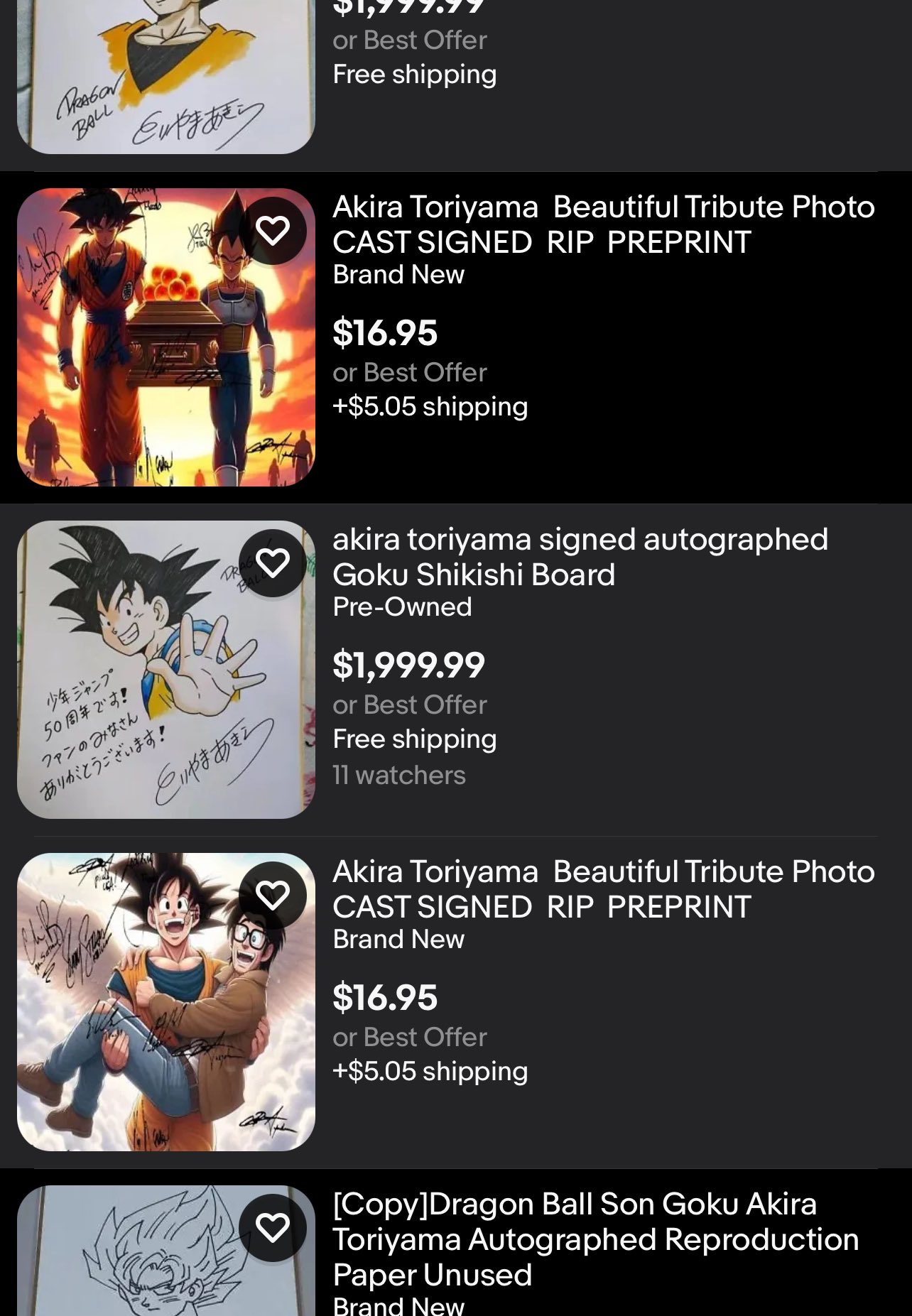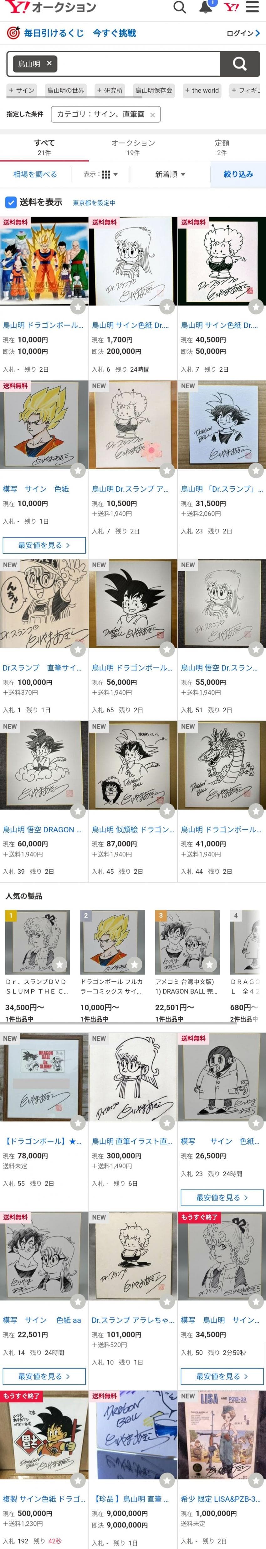 鳥山明の死去を利用して金を儲けようという人物が世界で多くみられる