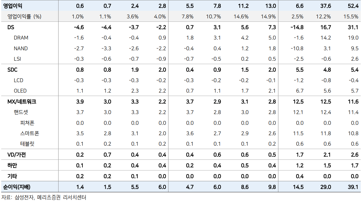 これと共に、モバイル経験(MX)部門でギャラクシーS24とスマートフォン出荷量の推定値を従来の5700万台、1億3200万台から6000万台、1億3500万台に引き上げた。 3兆8000億ウォン規模の営業利益が発生するものと予想した。
