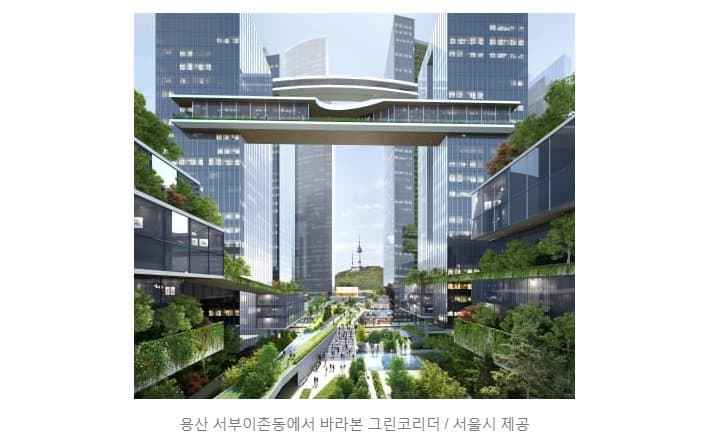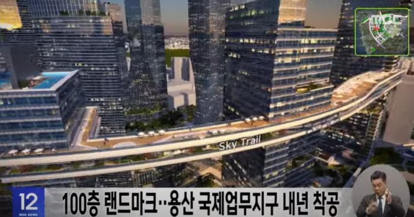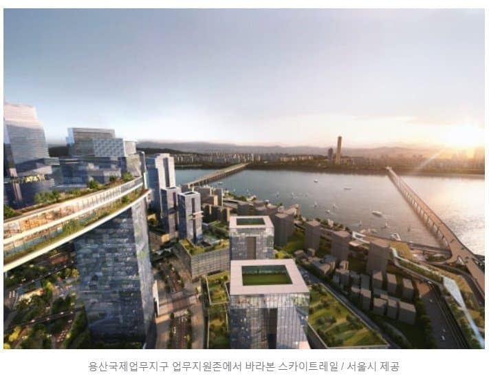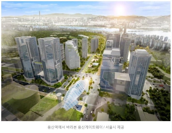 「ソウルの最後の金の山」と呼ばれる龍山整備廠敷地が本格的に開発される。 100階前後のランドマークを建て、全体の土地面積(約50万㎡)に達する緑地を確保する。 市民が楽しめるよう建物45階を連結して1.1キロに達する歩行展望橋(スカイトレイル)も設置する。 こうなれば龍山整備廠一帯は三成洞コエックスの2.5倍に達するいわゆる「超高層垂直庭園都市」に生まれ変わる。