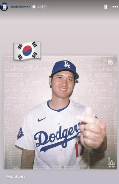 大谷は13日、ドジャースの選手たちがソウル・シリーズを記念して撮った写真で、韓国ならではのポーズ「指ハート」をして、太極旗マークを付けた。さらに、15日の出国に先立ち、初めて妻の写真を公開した時も太極旗マークを載せた。そして、韓国に入国する直前、飛行機の窓から眺めた風景の写真にも太極旗マークを付けている。大谷はその後、韓国に到着してソウル・シリーズ開催を知らせる投稿に4回目となる太極旗マークをアップした。韓国の複数の野球関連インターネット・コミュニティー・サイトでは「こんなに太極旗をたくさん使う日本人選手は初めて見た」と大騒ぎになった。今回のソウル・シリーズもファンの間では「大谷シリーズ」と呼ばれているという