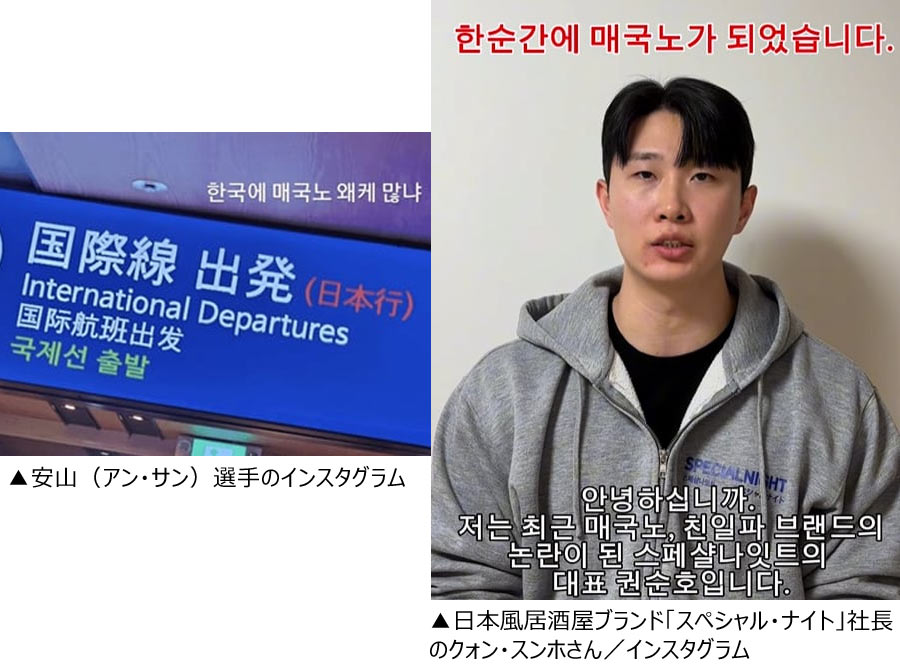 インスタグラムのストーリーズは翌日には自動的に削除されるが、安山選手のストーリーズ画面は一気にネット掲示板などに広がった。安山選手のインスタグラム投稿には「日本派の売国奴は嫌い」「私も行ったことがあるが、店員も日本語で話していた」「日本が好きなら日本に行って住め」などのコメントもついた。その一方で「日本の店に行ったら売国奴か」「なら本人は独立運動家か」などの反論もあった。