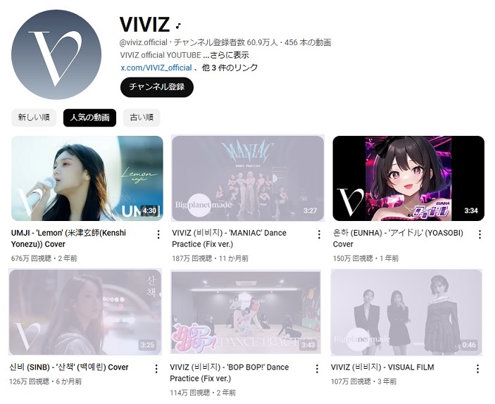 どういう事情なのかは知らないけれど、グループの公式チャンネル【VIVIZ】の人気順(再生回数順)で、JPOPカバー曲が1位と3位に入ったままにしておくのは良くないと思う。
