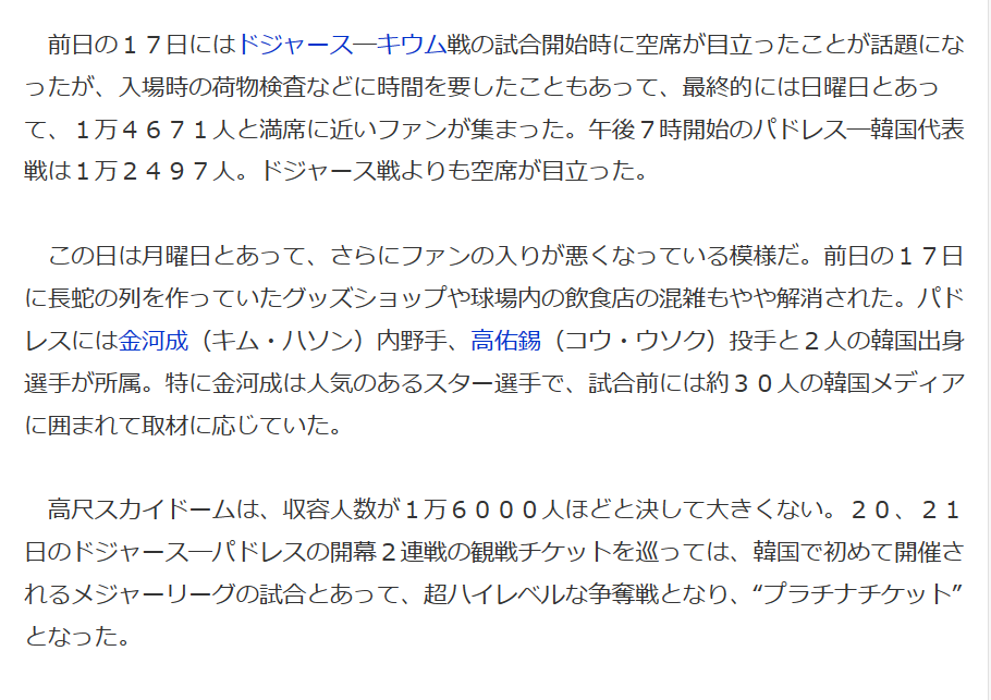 だからこの試合のチケットはそもそも、韓国人にはあまり人気は無かったと思うよ