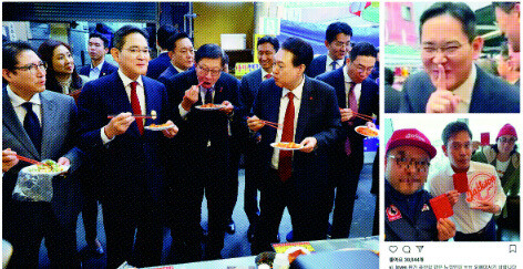 ここで登場するのがカリスマだ。お世辞ではない。尹錫悦(ユン・ソクヨル)大統領が財閥トップたちと釜山(プサン)でトッポッキを食べたエピソードを見てみよう。尹大統領は忙しい会長たちを政治的行事に動員したと激しく批判されたが、サムスンのイ・ジェヨン会長は「しっ」という滑稽な表情のミームが拡散し、おでん屋の前には「イ・ジェヨン会長が立っていたところ」という表示も登場した。この些細なこのエピソードから、イ会長に人とは違うカリスマがあると考える大衆の心理がうかがえる。サムスン関係者たちが「わが会長」に対する評価をする時、他のことはともかく、「オーラ」は確実にあるという話をたびたび聞く。すなわち財閥3~4世の(地位を)正当化する根底にはカリスマがあるというのが関係者たちの言葉だ。