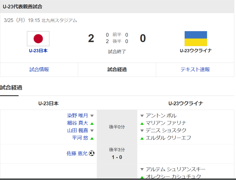 アウェーで行われた日韓定期戦で、日本は前半からペースを掴むと、スコアレスのまま迎えた後半11分、昨年の杭州アジア大会で活躍したFW内野航太郎(筑波大)が先制ゴールを奪取。同25分にも再び内野が決めてリードを広げると、守備陣の奮闘で無失点のまま試合を終えた。