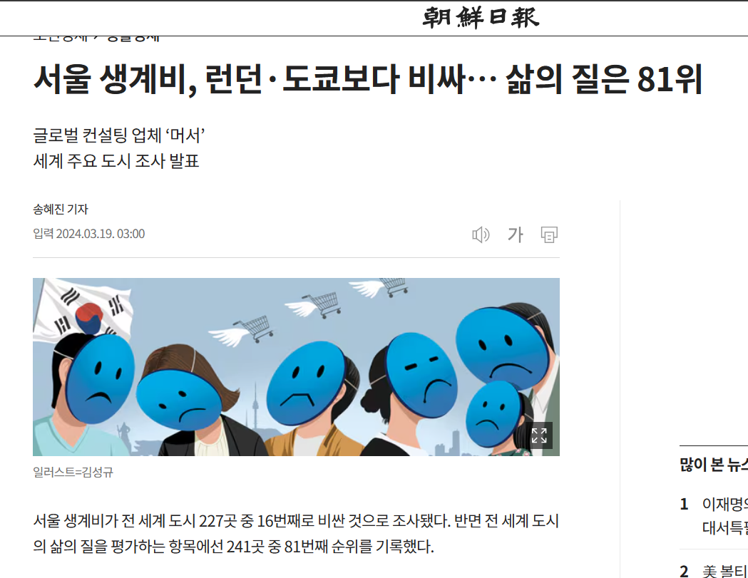 ソウル=物価が高く、生活の質81位の後進国w- 81