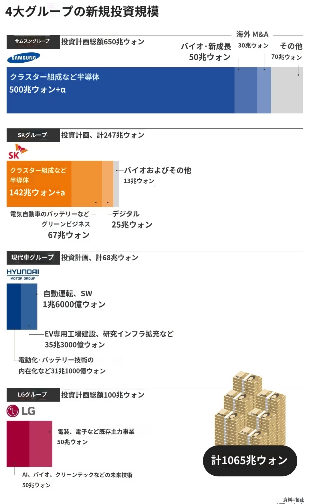 すでに一部の企業はこれに対する負担感を示している。業況が完全に回復していない状況で投資を大幅に増やすことで、財務の健全性が揺らぐのではと懸念しているのだ。SKハイニックスのクァク・ノジョン代表取締役社長は同日の株主総会で、「当年度の売上額を基準に設備投資(capex)の規律を立て、順守していく」としたうえで、「過度な設備投資支出を止め、現金水準を高めるなど、財務の健全性を向上させる」と述べた