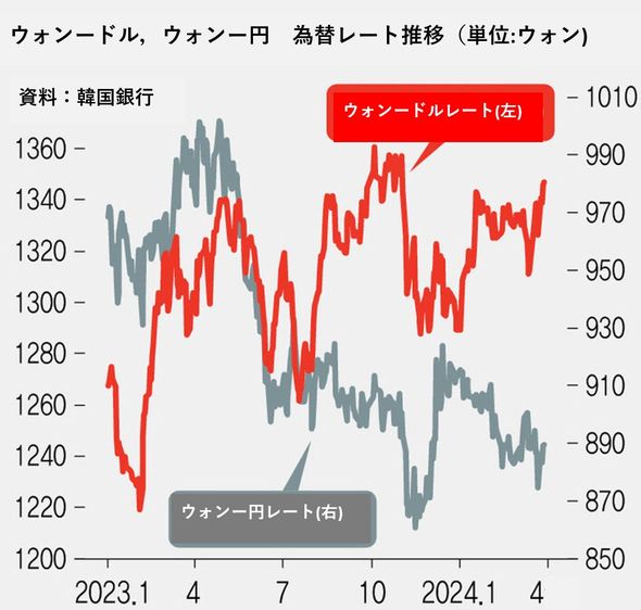 不動産プロジェクトファイナンス(PF)を中心とした4月危機説は、韓国政府の積極的な流動性政策で沈静化する雰囲気だが、韓国経済、特に内需景気の回復までには相当な時間がかかる余地が大きい。内需の流れだけを見れば、ウォン相場がさらに下がるとの予想も排除できない。