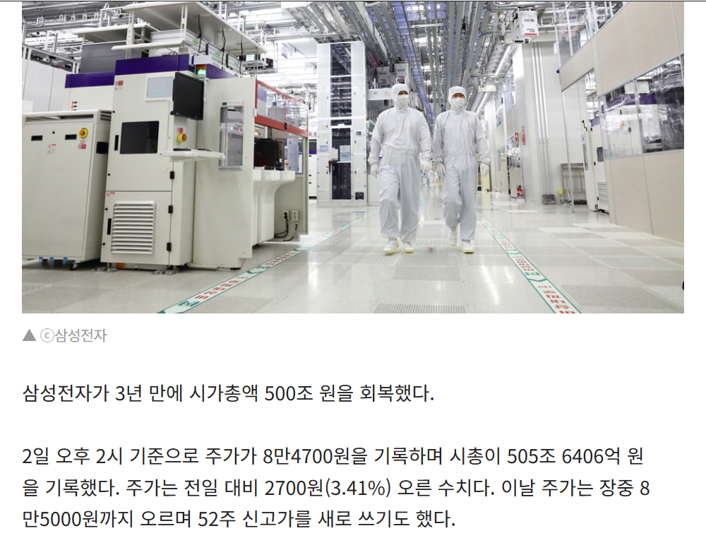 2日午後2時基準で株価が8万4700ウォンを記録し、時価総額が505兆6406億ウォンを記録した。>>1