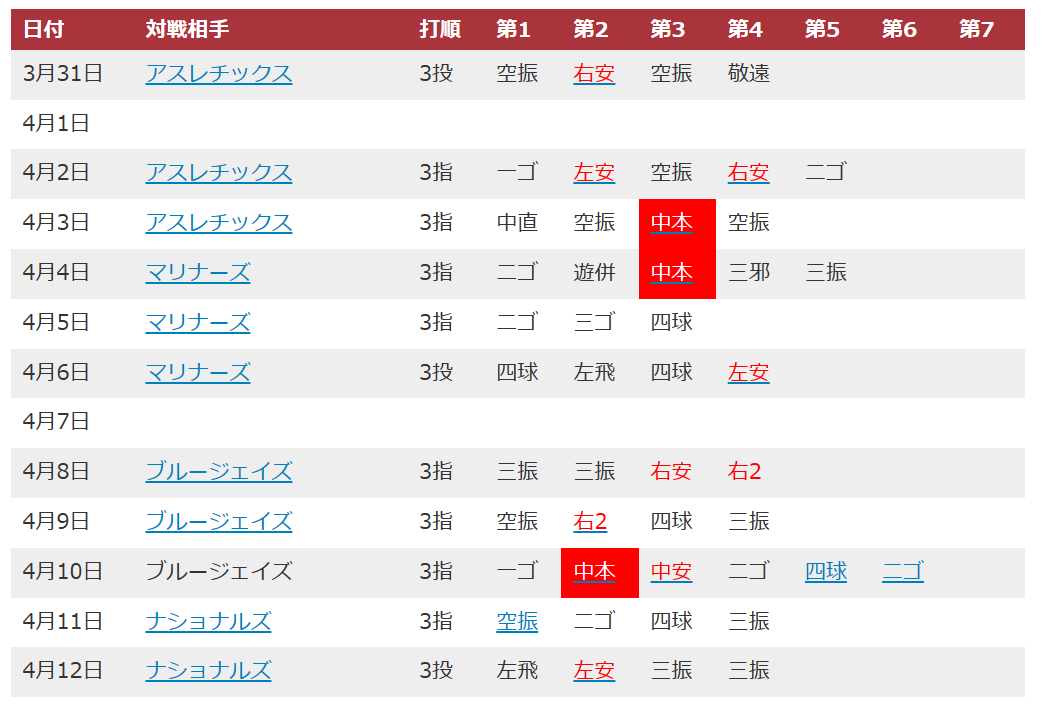 3号じゃなくて、4号だった、ごめんちゃい!!なんか、見るたびにホームラン打ってる。