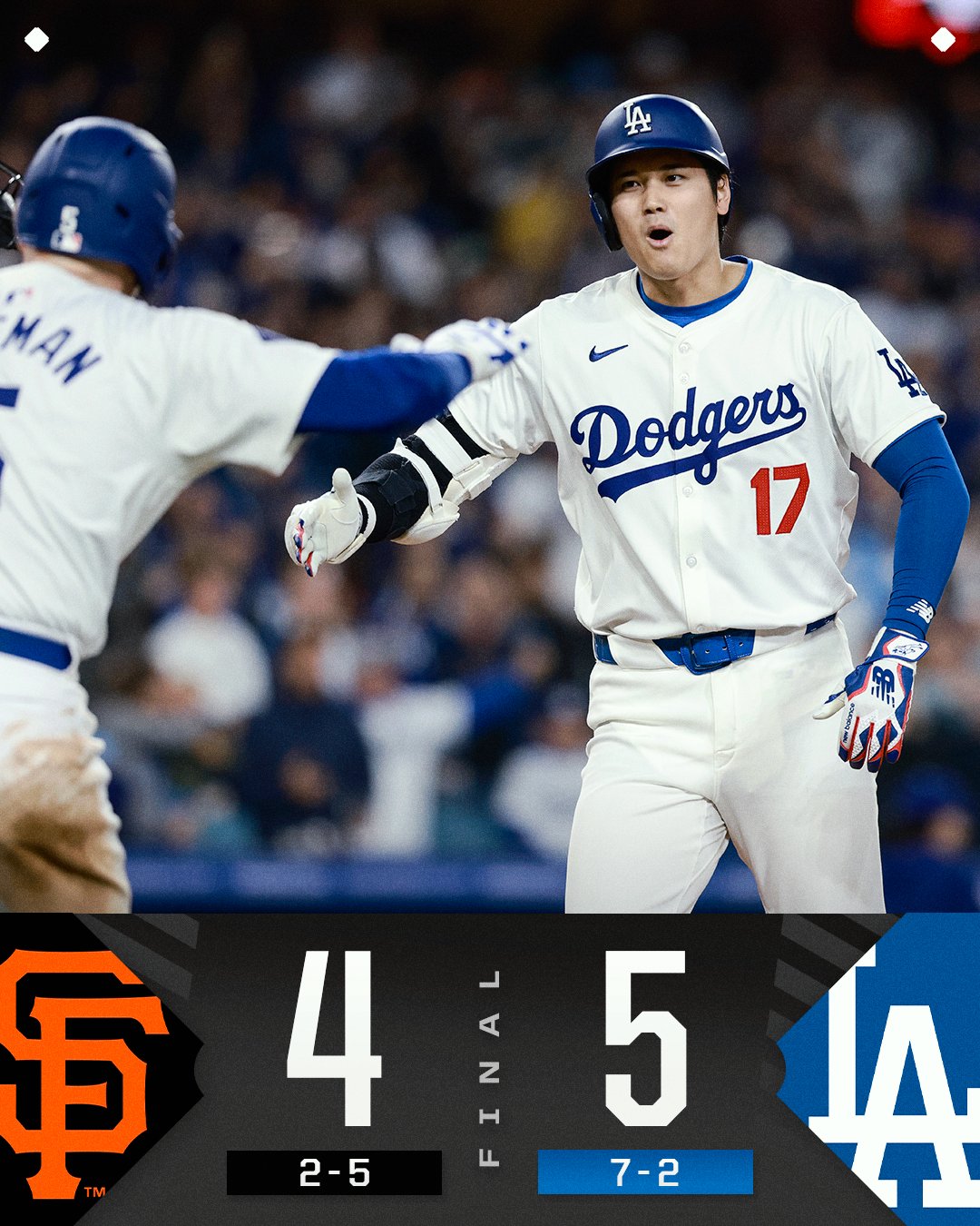ドジャース史上、最速の打球速度らしい。打った途端に、ボールが消えた!?今日の大谷は、第1打席2塁打を打ち、後続スミスのタイムリーヒットで先制点のホームを踏む。