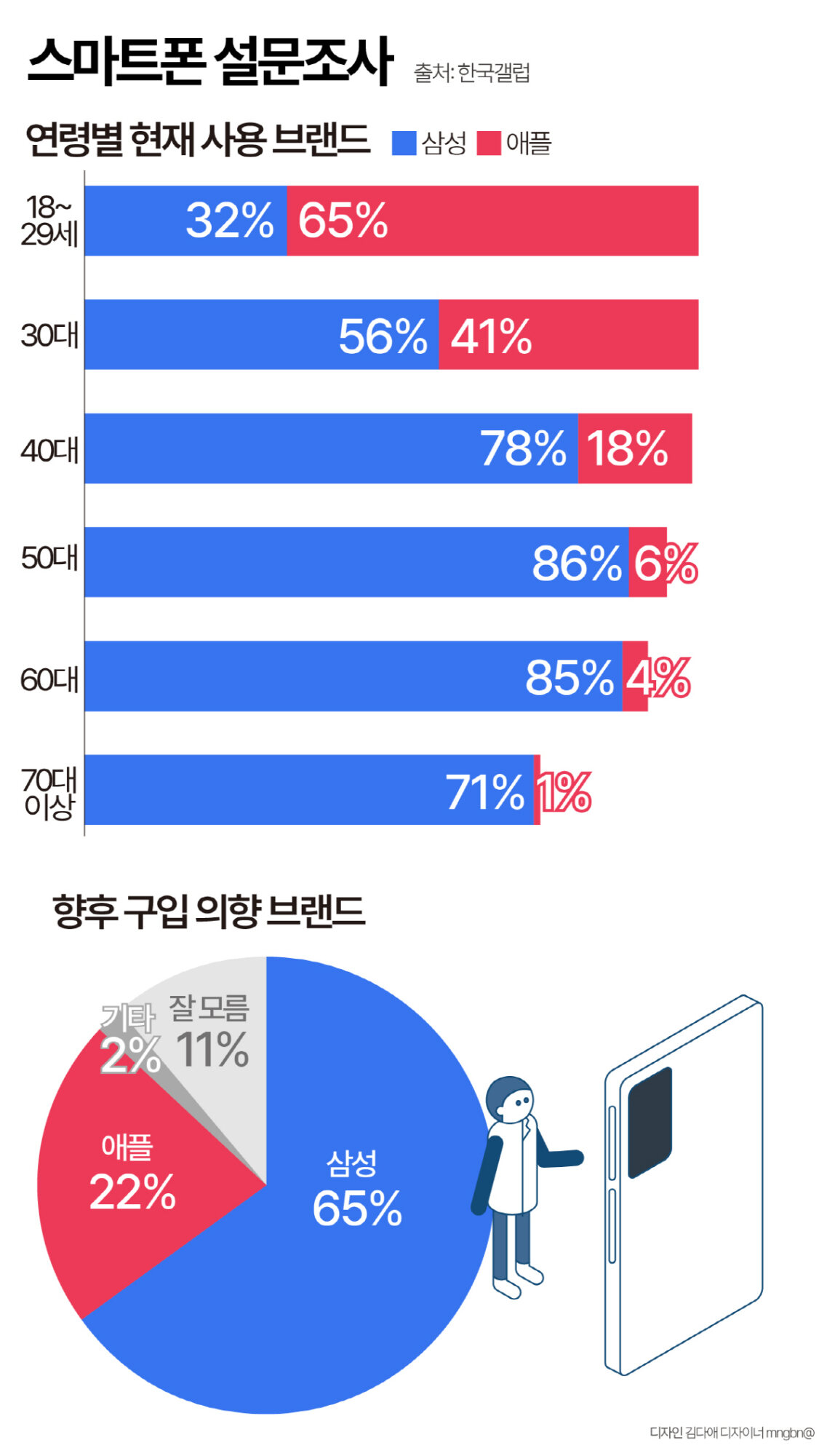 20代はアップルのアイフォン、40代以上はサムスンのギャラクシー。
