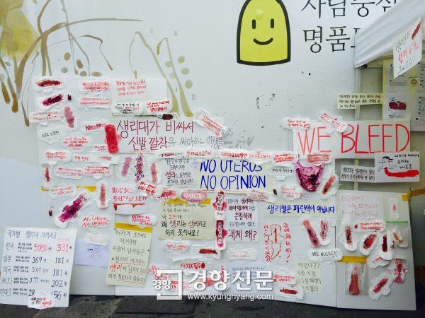 빨간색 물감으로 진짜 생리대인것처럼 만들었다.>>1