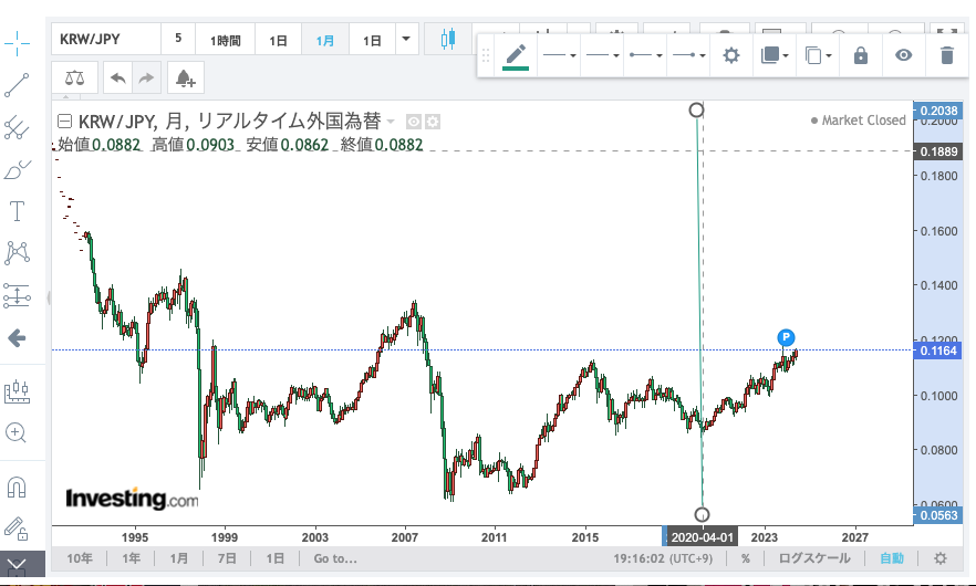 急激に円高ウォン安に!